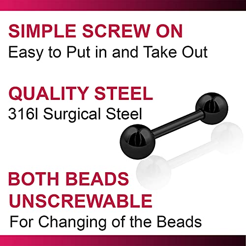 bodyjewellery - 6 قطع 16 غرام اقراط غضروف مسمار عمودي مضاد للزنمة ثلاثية الامام قضبان حلزونية لشحمة الاذن من الستيل الاسود مقاس ريشة ثقب