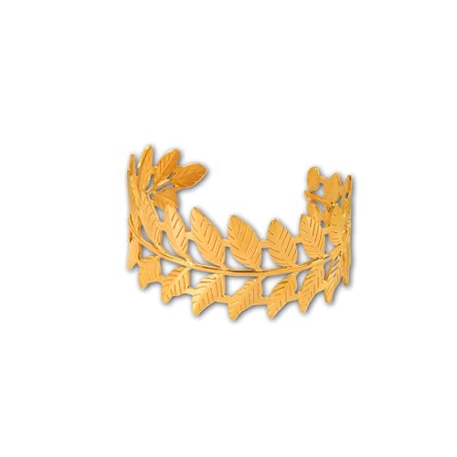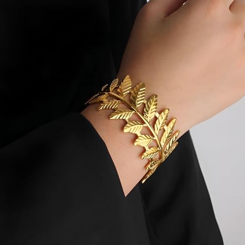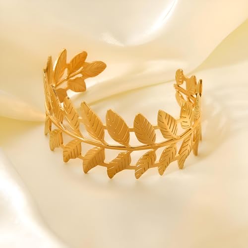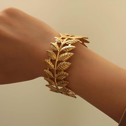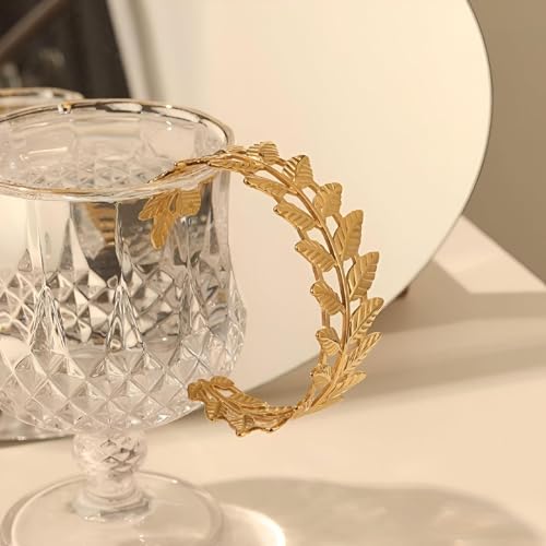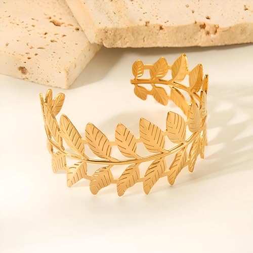 Generic - سوار بوهو - مجوهرات للنساء من الستانلس ستيل على شكل اوراق الغار واذني القمح بلون ذهبي، مناسب للحفلات والكريسماس والمناسبات الخاصة