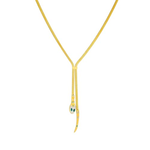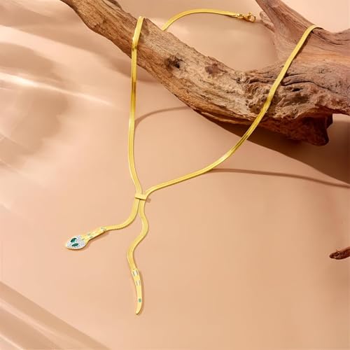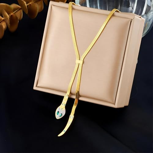 Generic - سلسلة جريئة للنساء بتصميم ثعبان صلب متين مع لمسات من الجمجمة والماس، درجة لون ذهبي، حلق بديل عصري لإطلالات مواكبة للموضة