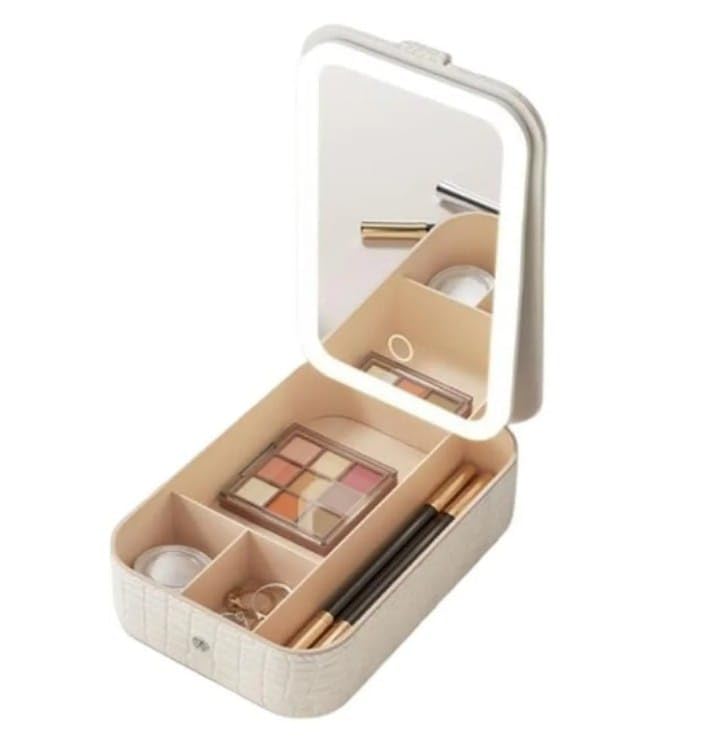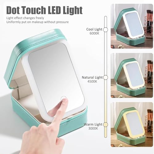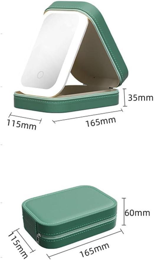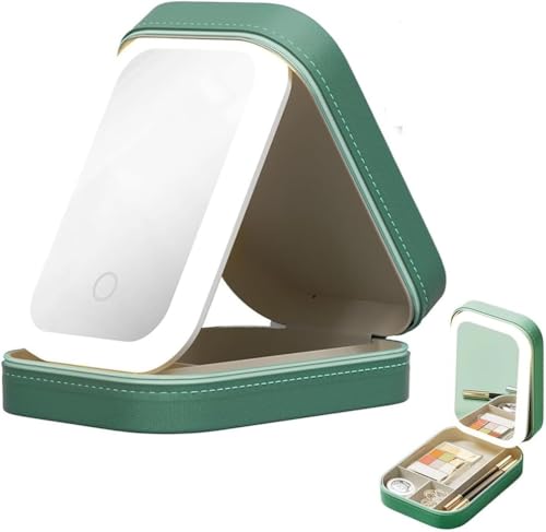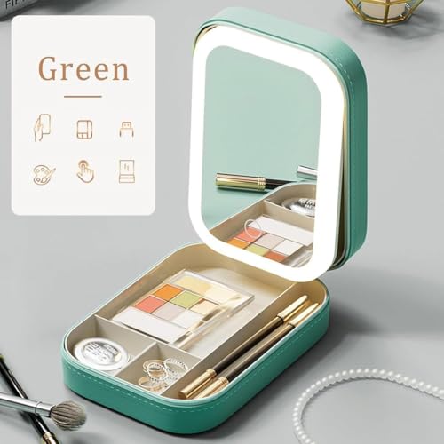Generic - مرآة مكياج محمولة متعددة الأقسام بإضاءة ليد مع 3 ألوان وغطاء واقي من الجلد، قابلة للتعديل بسعة كبيرة وصندوق تخزين لمستحضرات التجميل للسفر وشحن USB من بولبو، لون أخضر