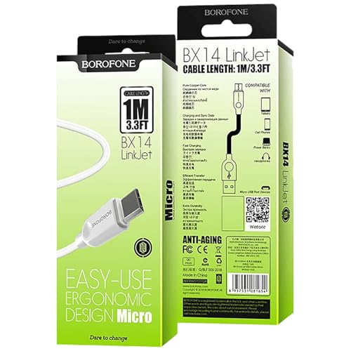 BOROFONE - بوروفون كابل مايكرو USB لينك جيت bx14، 1 متر - ابيض