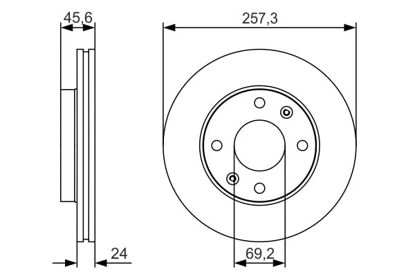 - القطر الخارجي [ملم] = 257، سمك قرص الفرامل [ملم]= 24.