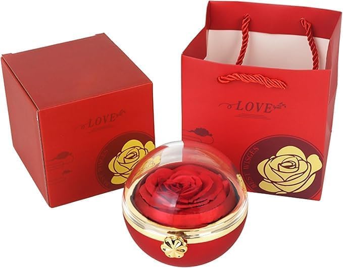 - علبة مجوهرات بشكل وردة حمراء