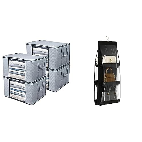 - صديقة للبيئة وبأسعار معقولة: مصنوعة من قماش غير منسوج عالي الجودة وبلاستيك بي في سي شفاف. نوافذ شفافة لتسهيل الوصول، متينة ومقاومة للغبار. 6 جيوب كبيرة، كافية لحمل أو تخزين أو تنظيم المحافظ / شنط اليد توت / شنط اليد.