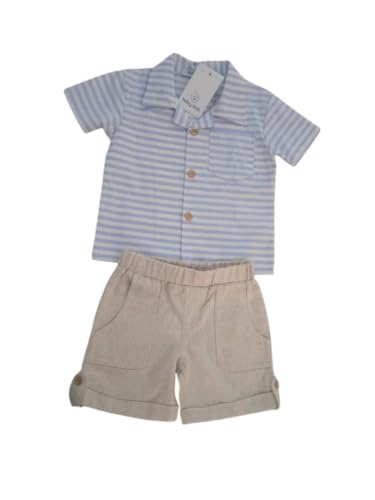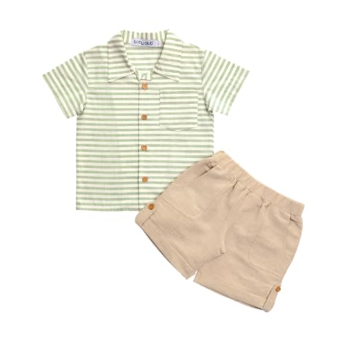 baby club - طقم قميص وشورت بتصميم مخطط للأولاد، قميص بأكمام قصيرة وأزرار بطول القميص وفي الياقة مع شورت بلون كاكي، لون أخضر وأزرق، لعمر من 1 إلى 4 سنوات