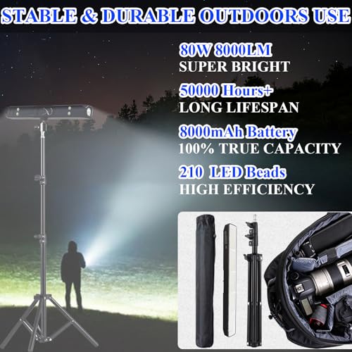 BOYKIM - مصباح تخييم من بويكيم، مصباح عمل محمول قابل لاعادة الشحن مع حامل ثلاثي القوائم قابل للفصل، مصباح يدوي لاسلكي 8000 لومن للصيد في الهواء الطلق والمشي لمسافات طويلة والمغامرة والطوارئ