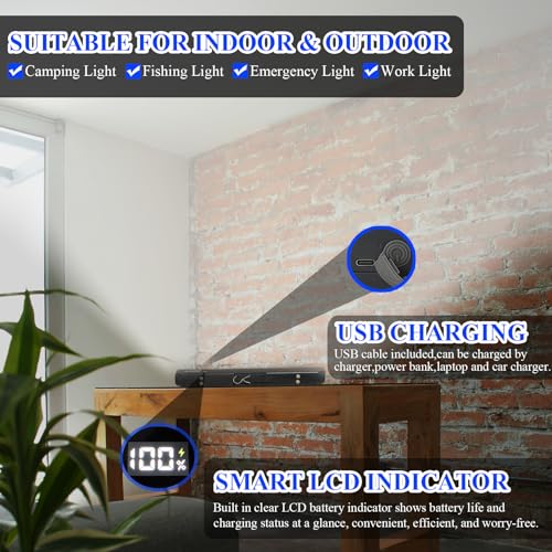 - أكثر من مجرد مصباح تخييم - هذا المصباح القابل لإعادة الشحن مع حامل تلسكوبي يدعم تكوينات متعددة. من المرائب ومواقع البناء إلى الأنشطة الخارجية والمشاريع المنزلية، يوفر هذا المصباح متعدد الأغراض مع ميزات قابلة للتعديل والفصل إضاءة مثالية. سواء كان للمهام التفصيلية أو حالات الطوارئ، فإن شريط إضاءة العمل المحمول ومتعدد الاستخدامات هذا يضمن الإضاءة وسير العمل دون انقطاع.