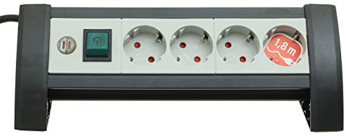 - مشترك كهرباء 4 منافذ من بريننشتول اسود/رمادي فاتح بتصميم رائع مثالي لوصلات مكتب بطول 1.8 متر آمن على الأطفال صنع في ألمانيا