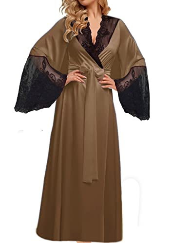 Generic - روب لانجيري ساتان طويل، بني