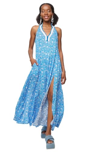 BSB - بي اس بي فستان ماكسي مطبوع للنساء، مقاس S، لون ازرق