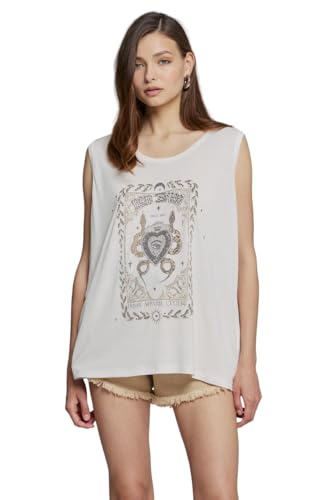 BSB - بي اس بي بلوزة بدون اكمام بطبعة للنساء، مقاس S، لون اوف وايت