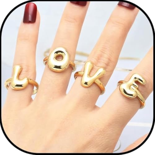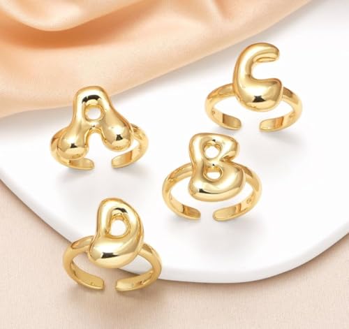 Generic - خاتم للنساء على شكل فقاعات، خواتم أنيقة مطلية بالذهب خواتم مجوهرات مفتوحة من الحروف الأبجدية من حرف ( A )