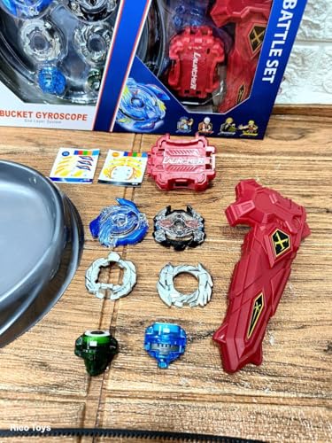 Generic - لعبة جيروسكوب دوارة مصنوعة من بلاستيك ومعدن عالي الجودة تتكون من شفرتين بأشكال مختلفة مع ذراع إطلاق مناسب للعب الآمن والممتع للأطفال