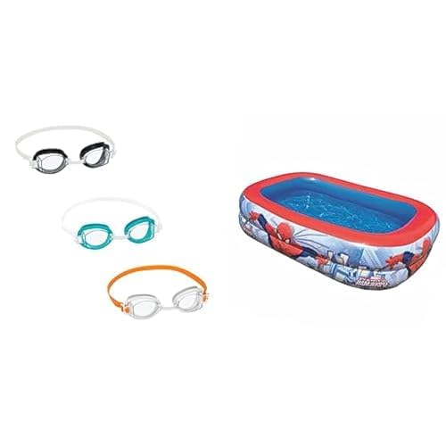 Bestway - مجموعة نظارة سباحة بيست واي + حوض سباحة قابل للنفخ من بيست واي بتصميم سبايدرمان