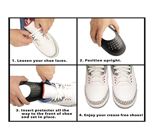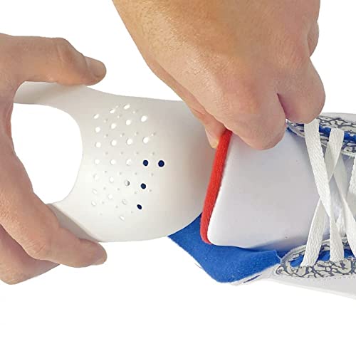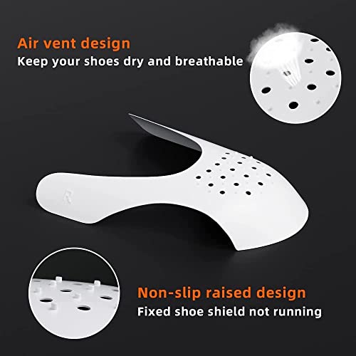 - تصميم مريح مزود بمسامات للتهوية: يتضمن كل واقي 26 مسام تهوية للحفاظ على الأحذية جافة وتهوية جيدة، مما يمنع الشعور بالرطوبة والحرارة داخل الحذاء، ملائم لمعظم الأحذية. إنه صغير الحجم ويعمل كواقي مثالي للتجاعيد لحذائك عند التخزين أو السفر.