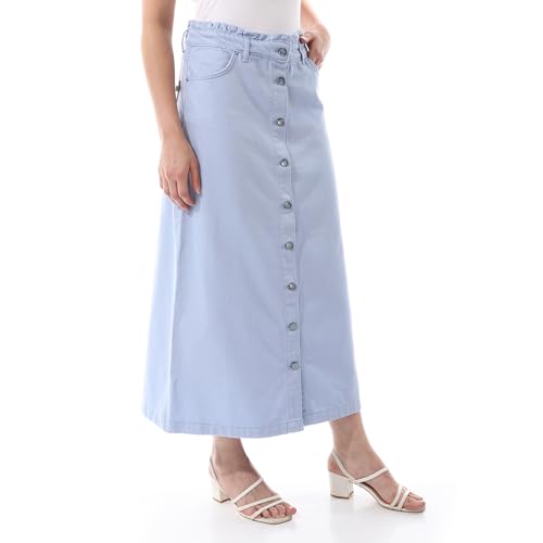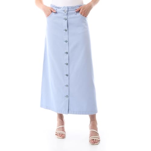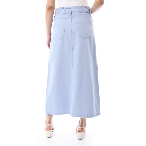 Coctail - جيبة ماكسي جبردين بازرار امامية، ازرق فاتح، ايه لاين، طول الكاحل - 6388