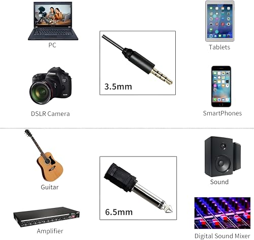 - يشمل الميكروفون مشبك تثبيت للملابس وبطارية LR44 مع فلتر إسفنجي للحد من الضوضاء، ومحول 0.64 سم للتوافق مع أجهزة متعددة.
