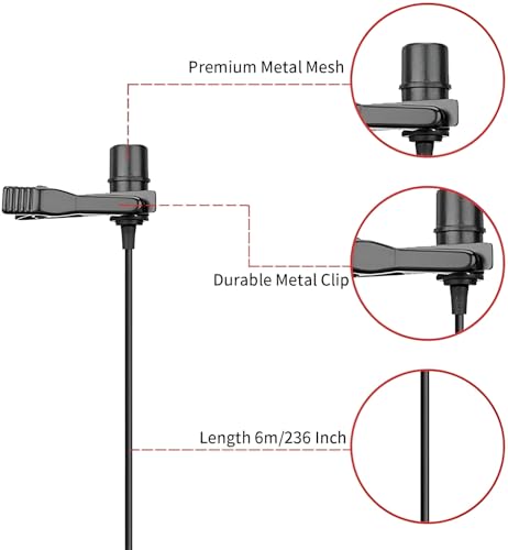 - ميكروفون احترافي لافالير مكثف متعدد الاتجاهات، يوفر صوتًا عالي الجودة لتسجيل الفيديوهات والعروض التقديمية.