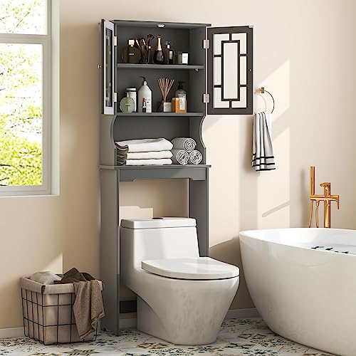 - 【منظم حمام أنيق وموفّر للمساحة】 تصميم الرف العلوي فوق المرحاض بمقاسات إجمالية (الطول × العرض × الارتفاع) 59.7 × 21.6 سم × 1.7 م يوفّر أقصى استفادة من المساحات الصغيرة. علاوة على ذلك، تضيف الأبواب المزخرفة والمقابض الفضية المستديرة سحرًا إلى شقتك. سيتماشى المظهر البسيط مع أي ديكور منزلي أو أثاث.