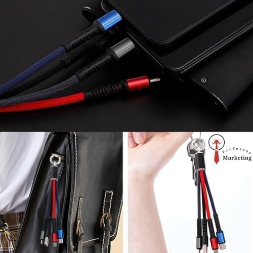 Generic - كابل شحن باور بانك متوافق مع لايتنينج من النوع C، كابل شحن سريع 3 في 1 من النايلون المضفر بمنفذ USB ونوع C(متعدد)