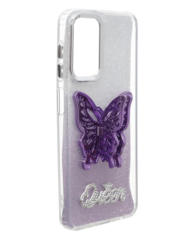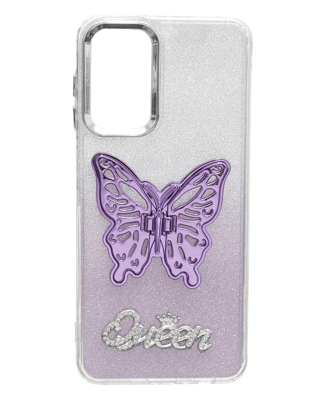 C.F.S - جراب حماية خلفي مزين بجليتر لامع وبحامل مخفي على شكل فراشة ثلاثية الأبعاد لموبايل سامسونج جالاكسي A13 من سي اف اس، لون أرجواني
