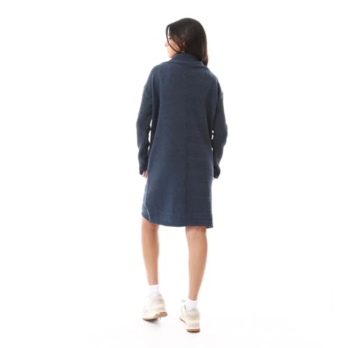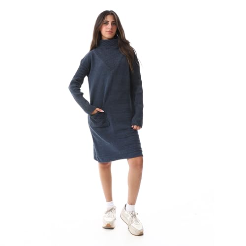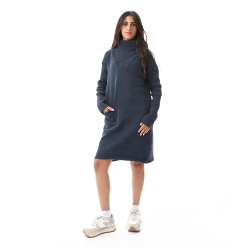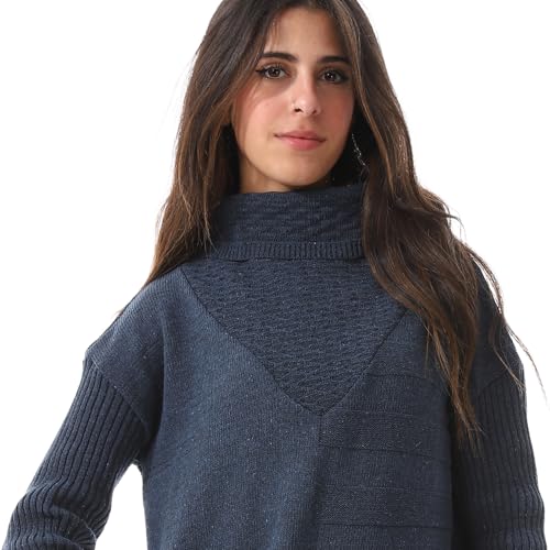 CAESAR - كنزة صوفية من سيزر بياقة عالية للنساء، قصة عادية بأكمام طويلة، مصنوعة من الصوف، لون أزرق، مقاس موحد