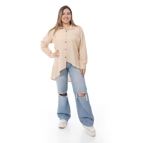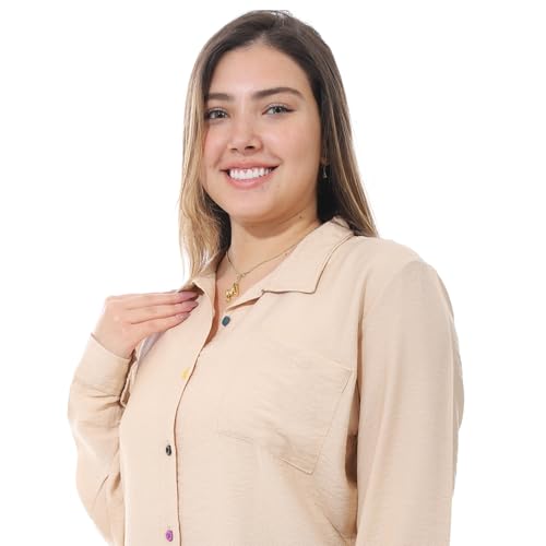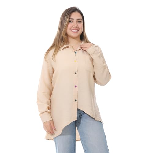 CAESAR - CAESAR Womens Women's linen blouse with a round back and colorful buttons Women's linen blouse with a round back and colorful buttons (pack of 1)
