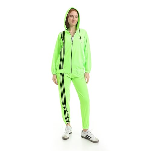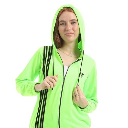 بدلة رياضية للنساء من قطعتين مع سحاب أمامي وتصميم 4 خطوط