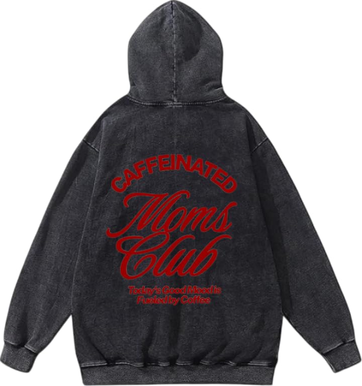 Generic - سويت شيرت بغطاء للرأس مطبوع عليه Caffeinated Moms Club Mom dad parents مغسول 2