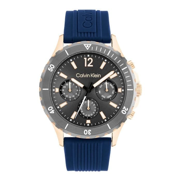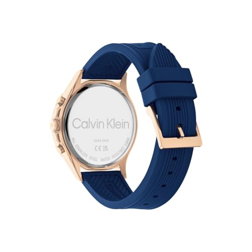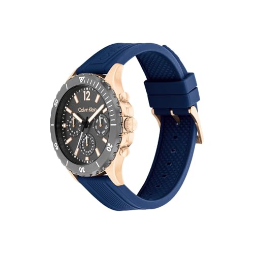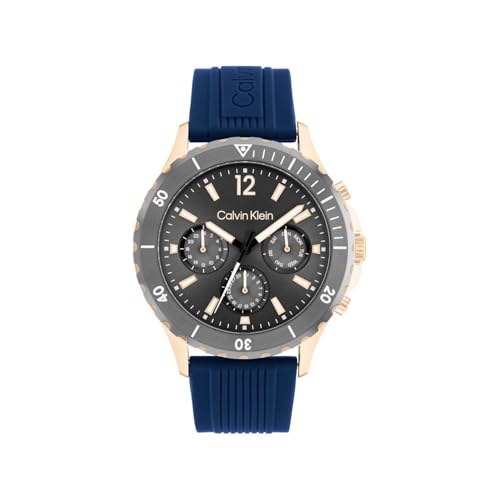 Calvin Klein - ساعة كاجوال بسوار مطاطي للرجال من كالفن كلاين، لون رمادي، تناظري
