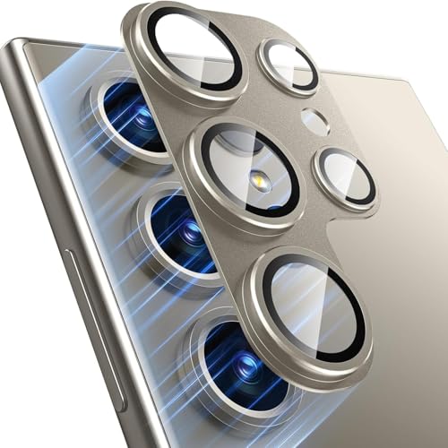 Whats Mob - واقي عدسة الكاميرا متوافق مع جالاكسي S24 الترا، خليط معدني من الالومنيوم، زجاج مقسى، مناسب للجراب - تيتانيوم
