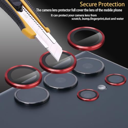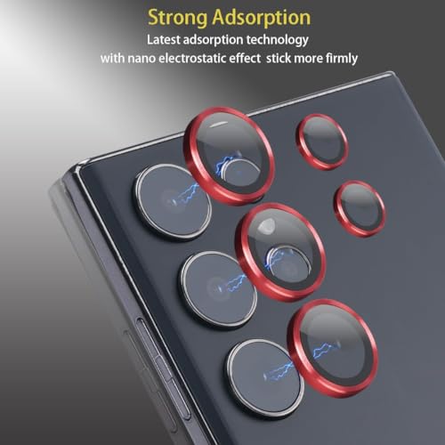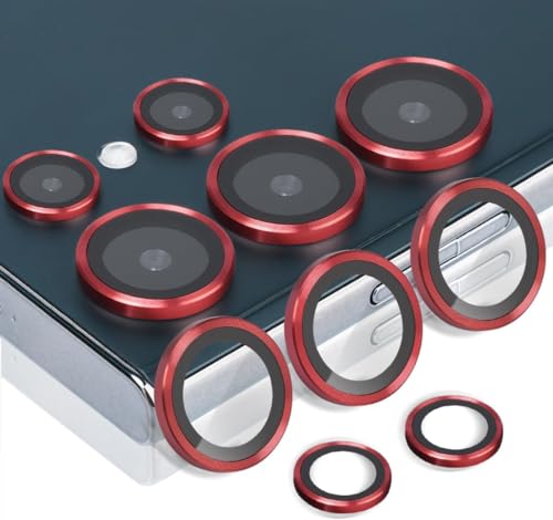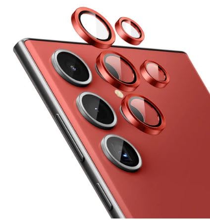 Generic - واقي عدسة الكاميرا من الزجاج المقوى بدرجة صلابة 9 مع حلقة من الالومنيوم، عدسات فائقة النحافة رفيعة للغاية مقاومة للخدوش، متوافق مع سامسونج جالاكسي S24 الترا (احمر)