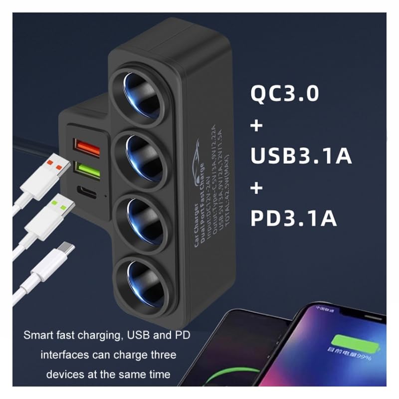 - محول ولاعة سجائر للسيارة ، مريحة لاستخدام مجموعة متنوعة من الأجهزة في نفس الوقت، لتلبية احتياجاتك المتعددة