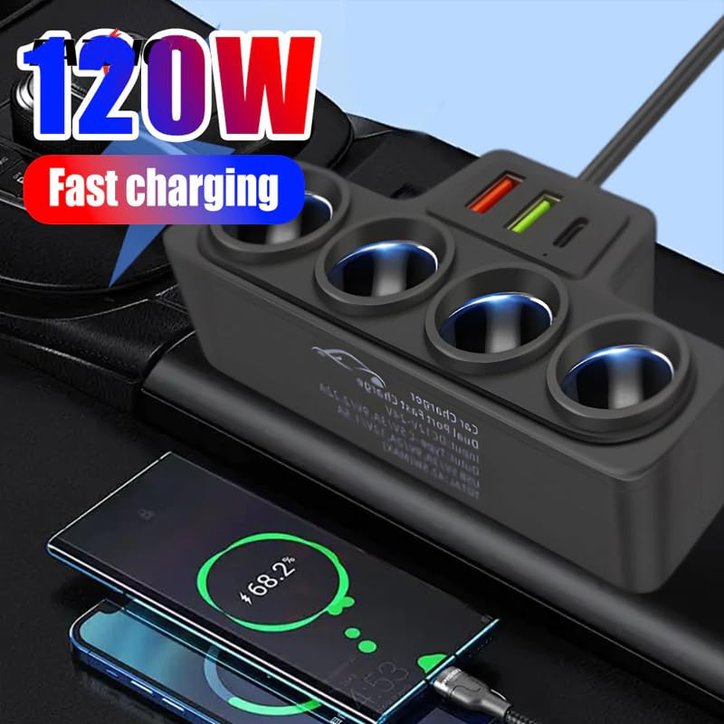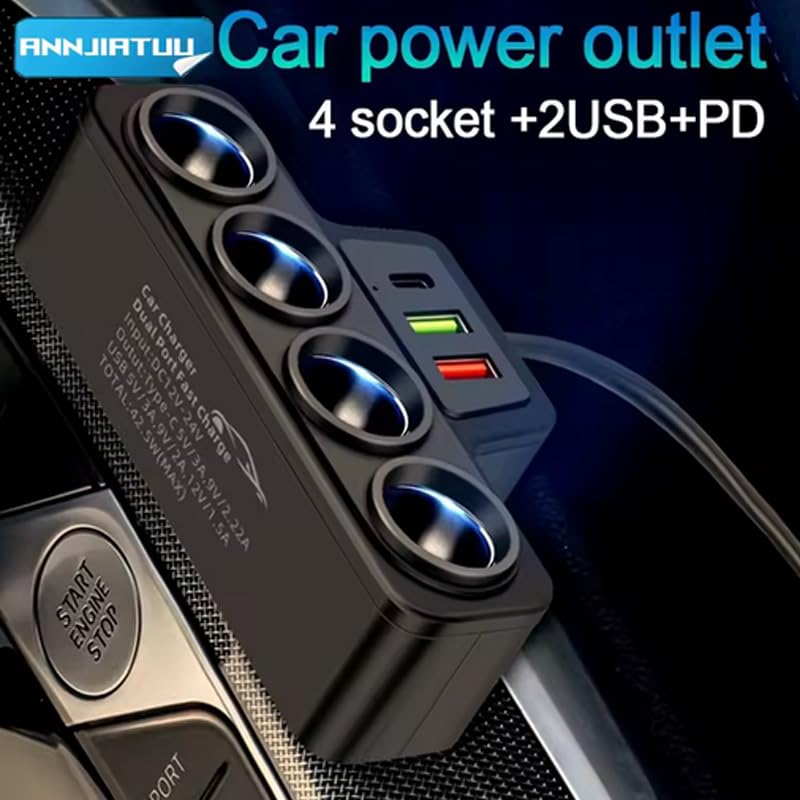 Generic - محول ولاعة السجائر للسيارة، مقبس متعدد لولاعة السجائر، مشترك ولاعة سيارة (4Sockets+2USB+PD) - من كابر مصر 2020