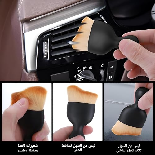 - تتميز هذه الفرشاة بتصميم منحني فريد وتتميز بشعيرات طويلة وقصيرة، مما يسمح بالتنظيف العميق لفتحات التهوية والزوايا المخفية الأخرى. تحبس الشعيرات المصنوعة بعناية الغبار والأوساخ مع ضمان عدم ترك أي خدوش أو خطوط، مما يجعلها مناسبة للحفاظ على نظافة المناطق المهمة داخل سيارتك، مثل وحدة التحكم المركزية والمقاعد الجلدية وحتى النوافذ.