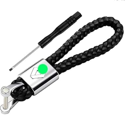Generic - ميدالية وسلسلة مفاتيح سيارة جلد مضفرة مناسبة لمفاتيح السيارة والدراجات النارية ومفاتيح العائلة - متوافقة مع رينو لون اسود