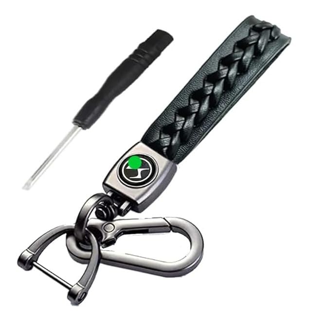 Generic - ميدالية وسلسلة مفاتيح سيارة جلد مضفرة متوافق مع شعار دي اس DS، أسود