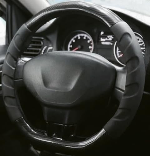 - غطاء حماية طارة دركسيون السيارة للنساء والرجال، مصنوع من جلد ألياف كربونية عالي الجودة
