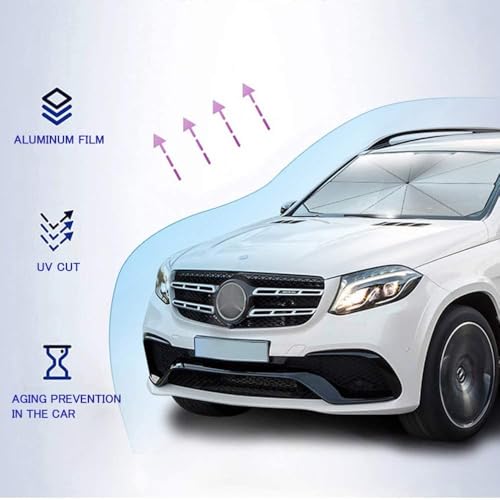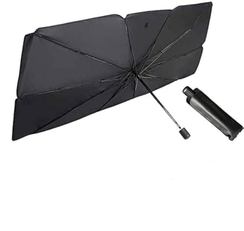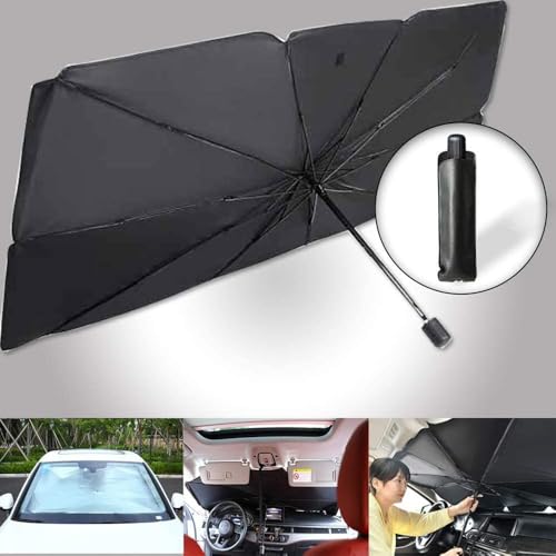 Sulfar - شماسة زجاج السيارة الأمامي للحماية من أشعة الشمس، قابلة للطي بشكل شمسية للحفاظ على سيارتك باردة وتحميها من التلف، تحجب الحرارة والأشعة فوق البنفسجية، سهلة الاستخدام (مقاس متوسط، 1.25 متر×65 سم)