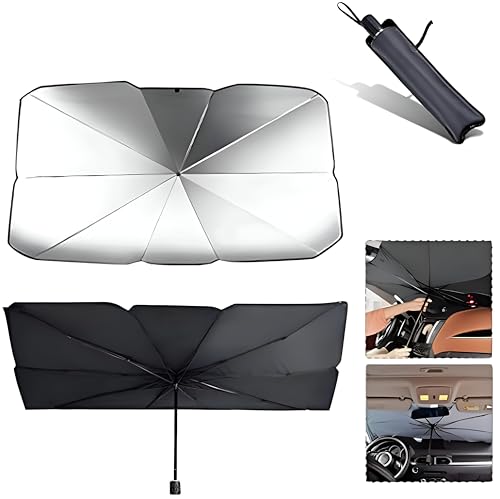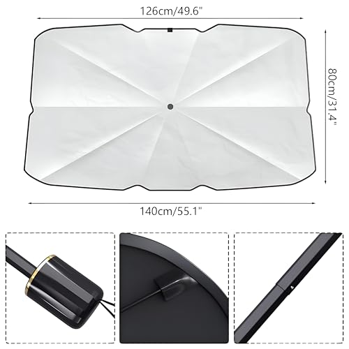 Generic - شماسة لزجاج مقدمة السيارة، قابلة للدوران 360 درجة وقابلة للطي مع حماية من الأشعة فوق البنفسجية وعزل حراري، سهلة التخزين، للسيارة وسيارات الدفع الرباعي والشاحنات (1.4 متر × 80 سم) بدون علامة تجارية