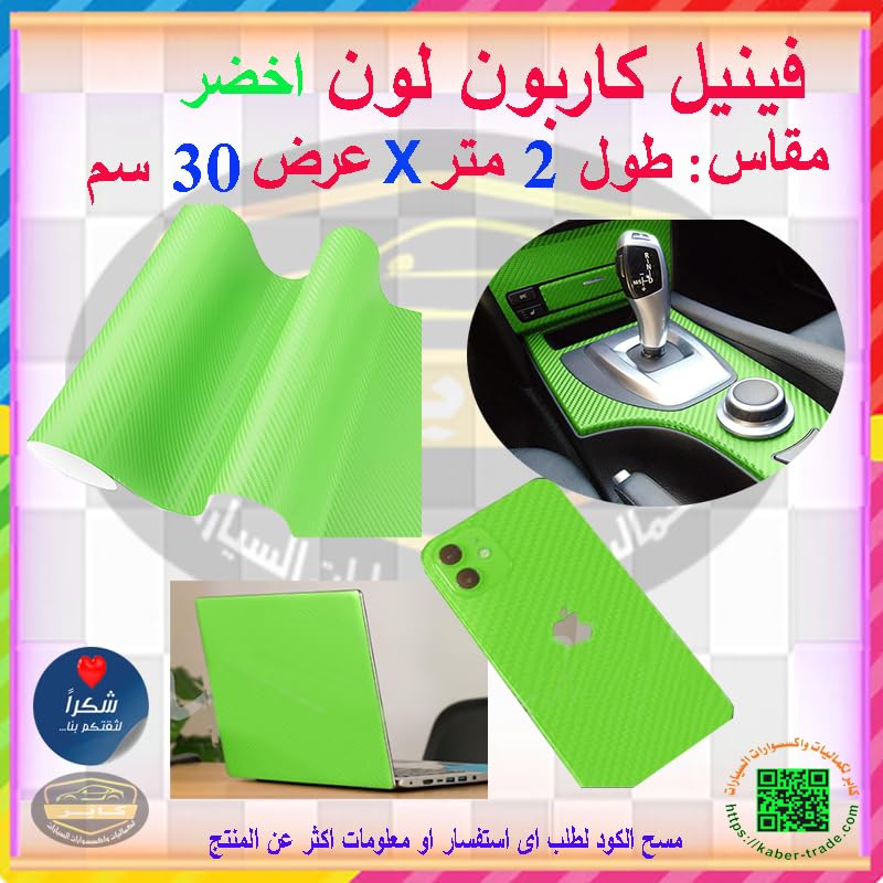 Generic - رول فينيل كاربون مناسب للسيارات و المطبخ والاجهزة والموبايلات متعدد ومتنوع الاغراض (لون كاربون اخضر ، طول 2 متر ، عرض 30 سم) - من كابر تريد