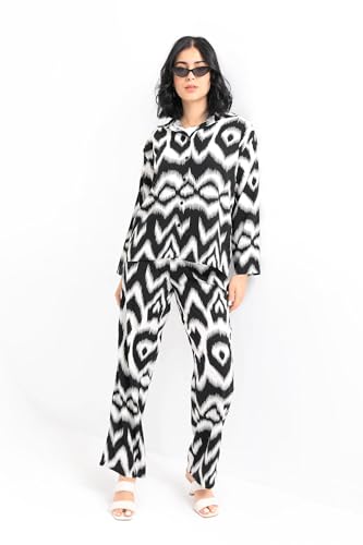 CARINA - بنطلون منقوش للنساء من كارينا، لون أسود وأبيض