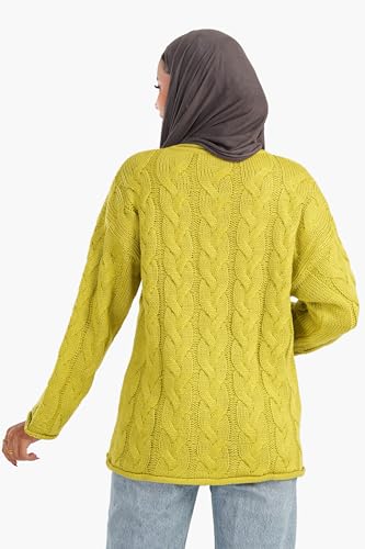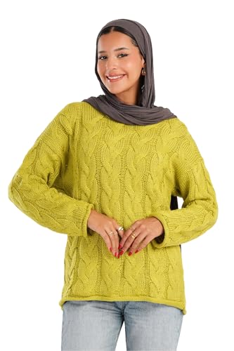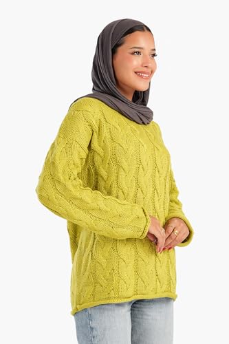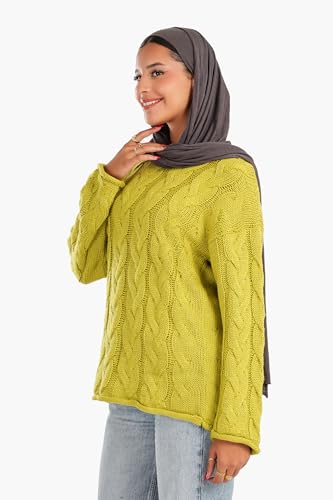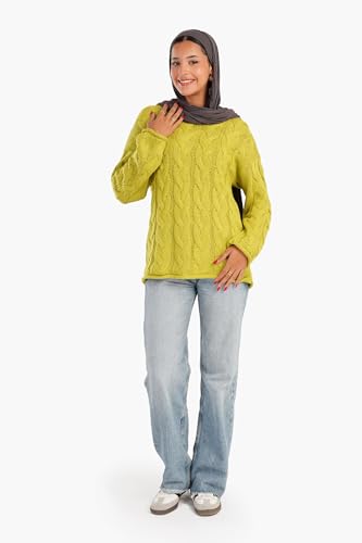 CARINA - كنزة بولوفر من كارينا برقبة مستديرة للنساء بأكمام طويلة، مصنوعة من قماش مضفر منسوج