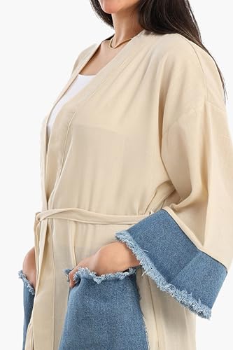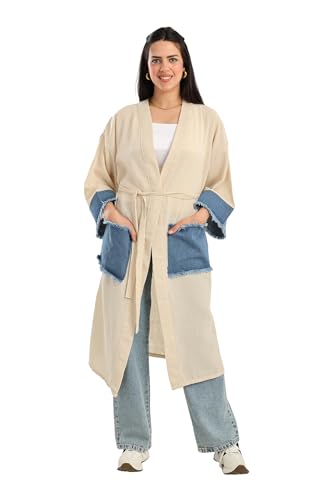 CARINA - كيمونو للنساء من الفوال والدينيم بلون متباين من كارينا (عبوة من قطعة واحدة)