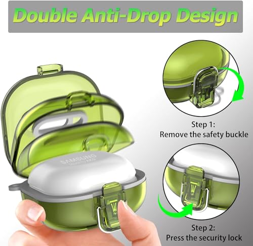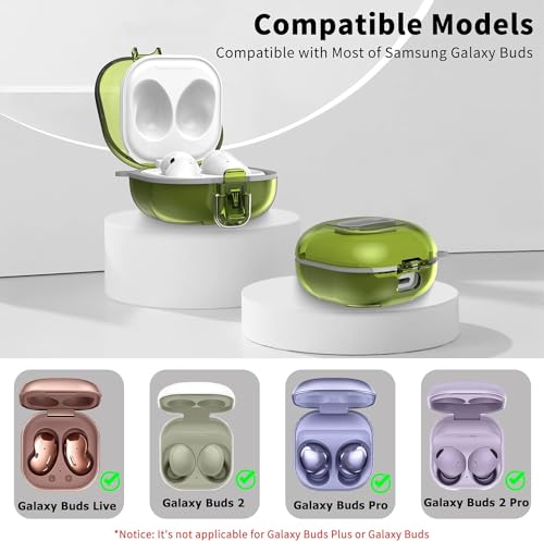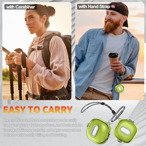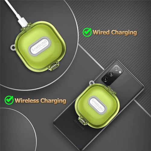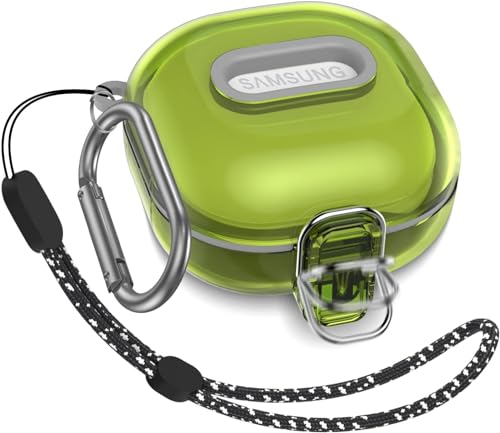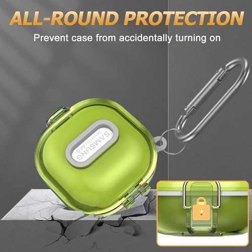 ELMO3EZZ - جراب حماية متوافق [قفل محسن] مع علبة من المعز، لسماعات جالاكسي بادز 2 برو/جالاكسي بادز برو/جالاكسي بادز 2/جالاكسي بادز لايف، جراب واقي مقاوم للصدمات مع حزام (لون أصفر شفاف)، بلاستيك