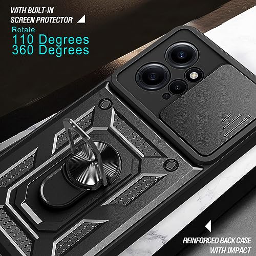Generic - جراب حماية خلفي مضاد للصدمات مع حلقة معدنية وحماية لعدسة الكاميرا لموبايل ريدمي نوت 12 شبكة الجيل الرابع 4G فقط (اسود)