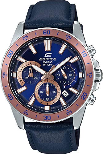 Casio - ساعة اديفيس كونوجراف انالوج بعقارب وسوار جلد للرجال من كاسيو- لون كحلي، موديل EFV-570L-2BVUDF