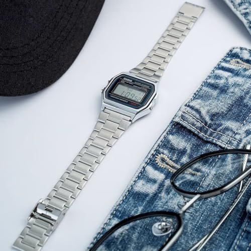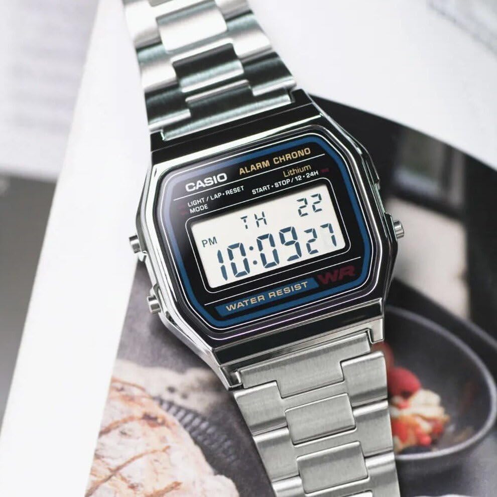 Casio - ساعة كلاسيكية للرجال من كاسيو - #A158W-1، بمينا أسود، بسوار فضة