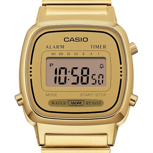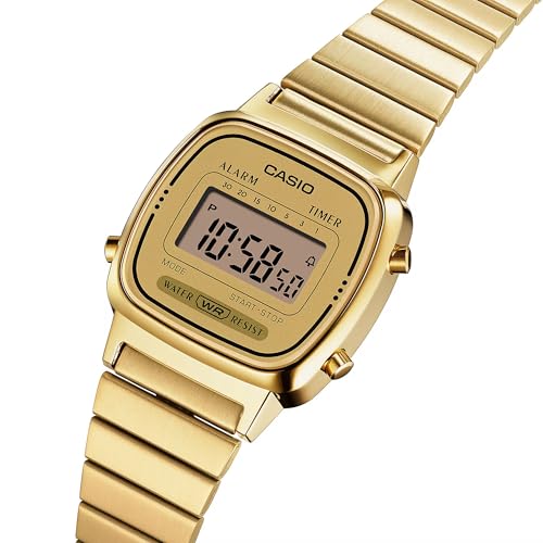 Casio - ساعة رقمية بمينا ذهبي وسوار ستانلس ستيل للنساء من كاسيو، la670wga-9df
