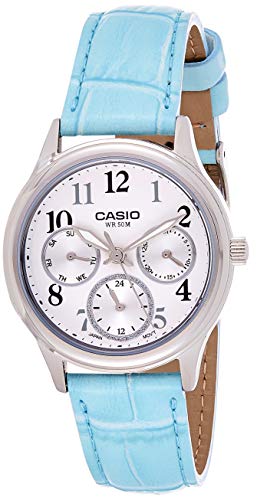 Casio - ساعة كواترز بعرض انالوج بعقارب وبسوار جلد للنساء من كاسيو